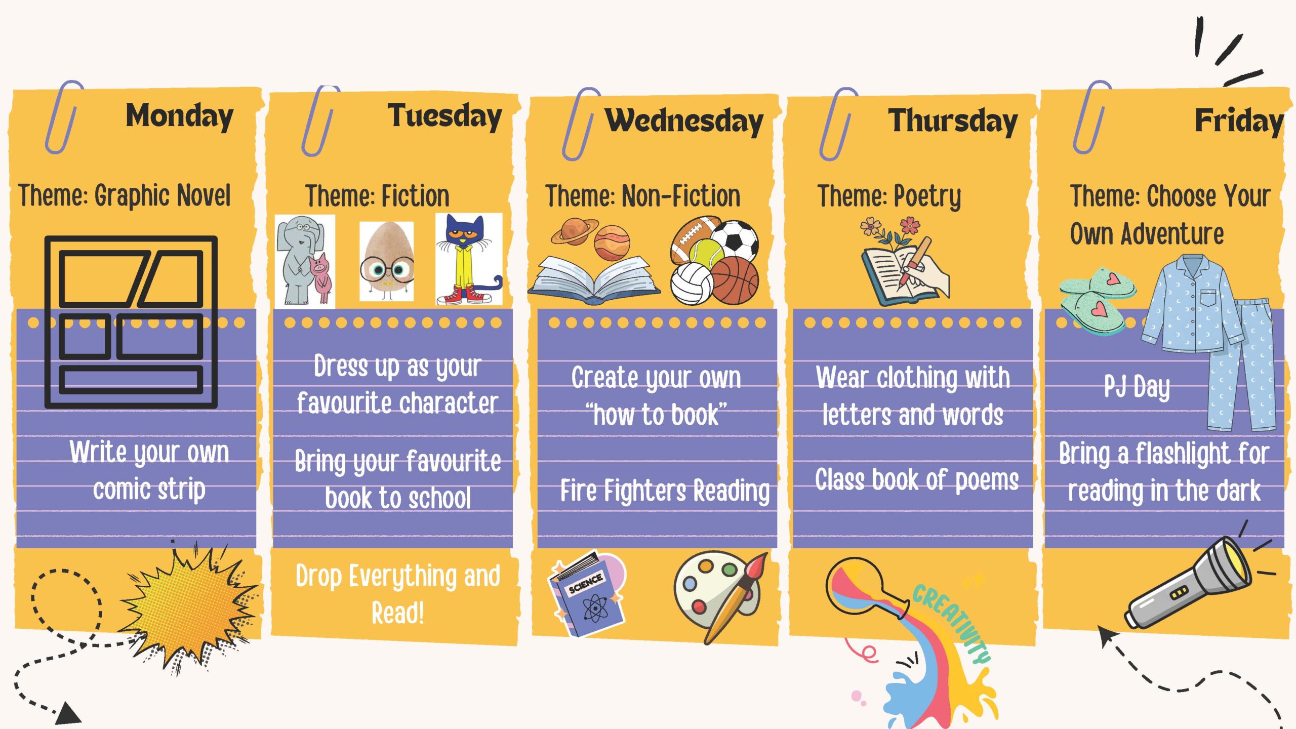 This year’s theme, “For the Love of Learning,” invites students to explore reading in all its forms, including graphic novels, fiction, non-fiction, poetry, and choose-your-own-adventure stories. The week will be packed with fun, featuring Literacy BINGO, school spirit days, and special guest visitors, all designed to spark curiosity and a love of reading.